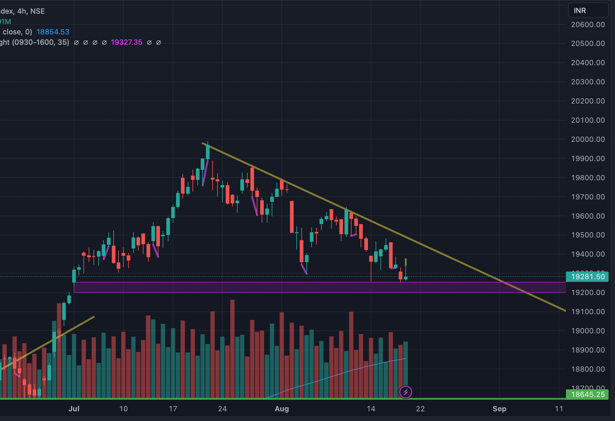 If the support is not broken and it starts to go up , unwind call shorts when yellow trend line breaks!
