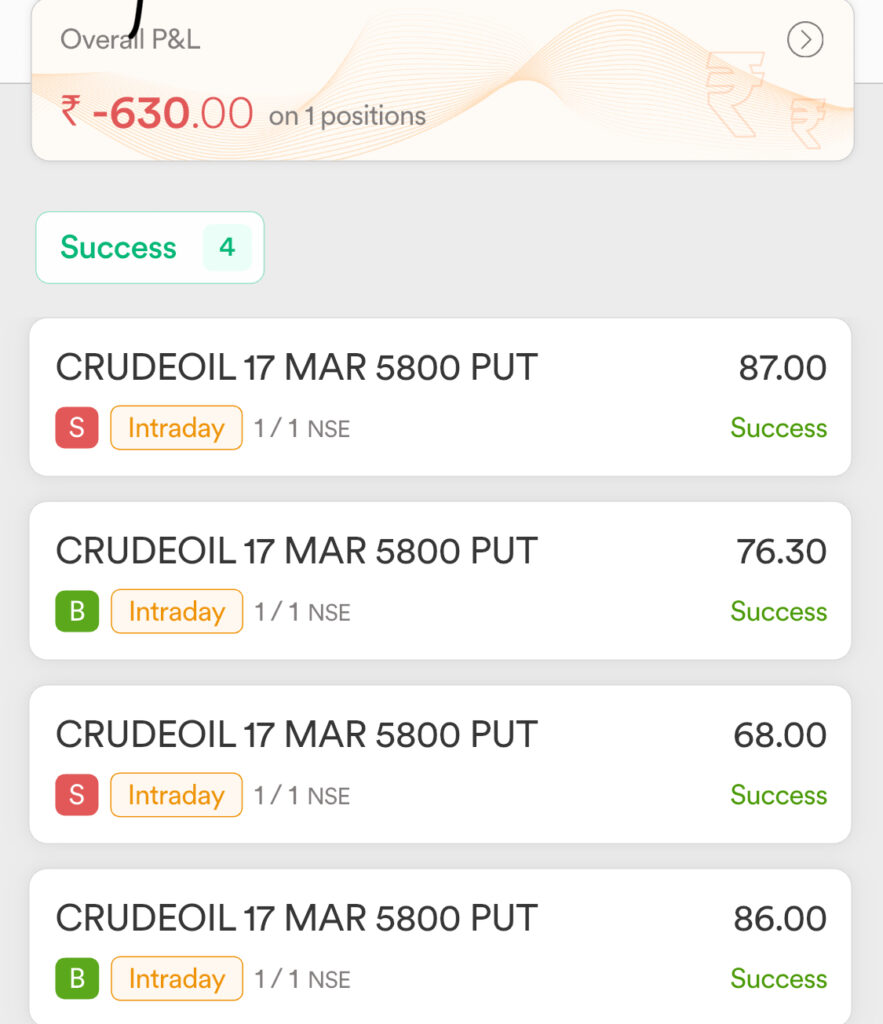 Day 4 of Mis trades and funded the Dhan account and took my first crude trade. Yeeey