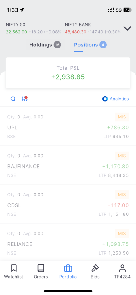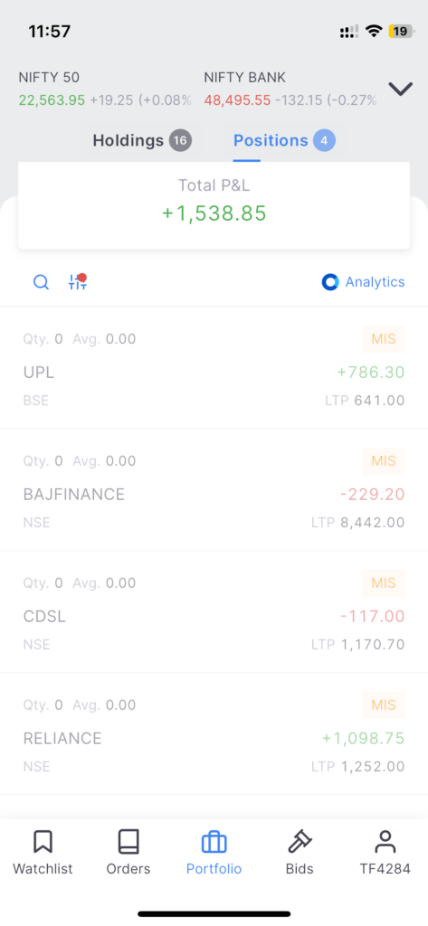 And regarding today’s mis trades in Zerodha took 3 trades today mainly. UPL buyside, Bajajfin bayside and Reliance in ORB breakout
