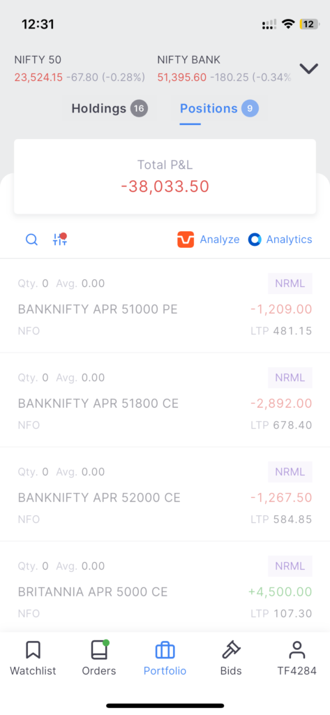 I was feeling like not trading, didn’t look at the screen much. But then I took one trades ended in 600 rs loss thats fine, no. I took out again loss became 1200. Then I trades in opposite direction loss became 2400 and finally took one trade in the opposite direction and loss is now 5k