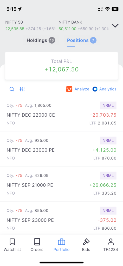 I am unable to take money from firstock so I think I should start investing in zerodha. And only hedged trades. Thank god I had hedges yesterday. The CE was supposed to be the hedge yesterday but its value didn’t decrease!!