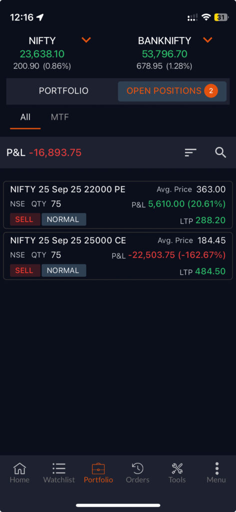 Nifty had gone gap-down at the opening and was at the support at 23300 and 23300 ce wa trading at 40 rs and I couldn’t take it!!